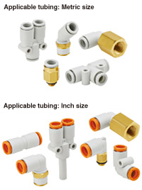 ・Body type: Totaled 51 models ・Thread material/Surface treatment(Treated or Non-treated): 2 types ・Selectable surface treatment: Brass(No plating), Brass + Electroless nickel plated ・Applicable tubing O.D. Round Type Metric: ø2, ø3.2, ø4, ø6, ø8, ø10, ø12, ø16 Inch:ø1/8'', ø5/32'', ø3/16'', ø1/4'', ø5/16'', ø3/8'', ø1/2'' Oval Type Metric: ø3.2, ø4, ø6 Inch:ø1/8'', ø5/32'', ø3/16'' ・Connection thread Metric:M3, M5, M6 R,Rc :1/8, 1/4, 3/8, 1/2 G:1/8, 1/4, 3/8, 1/2 NPT:10-32UNF, 1/16, 1/8, 1/4, 3/8, 1/2 Uni:1/8, 1/4, 3/8, 1/2 ・Seal method Sealant/Gasket seal Face seal Gasket seal(Uni thread) |