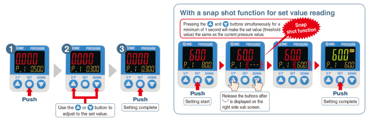 When the SET button is pressed and the set value (P_1) is being displayed, the set value (threshold value) can be set.