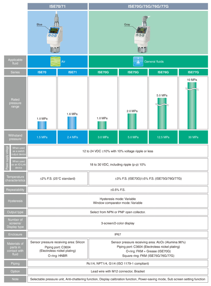 ISE70 | Air | Positive pressure | 0 to 1 MPa |