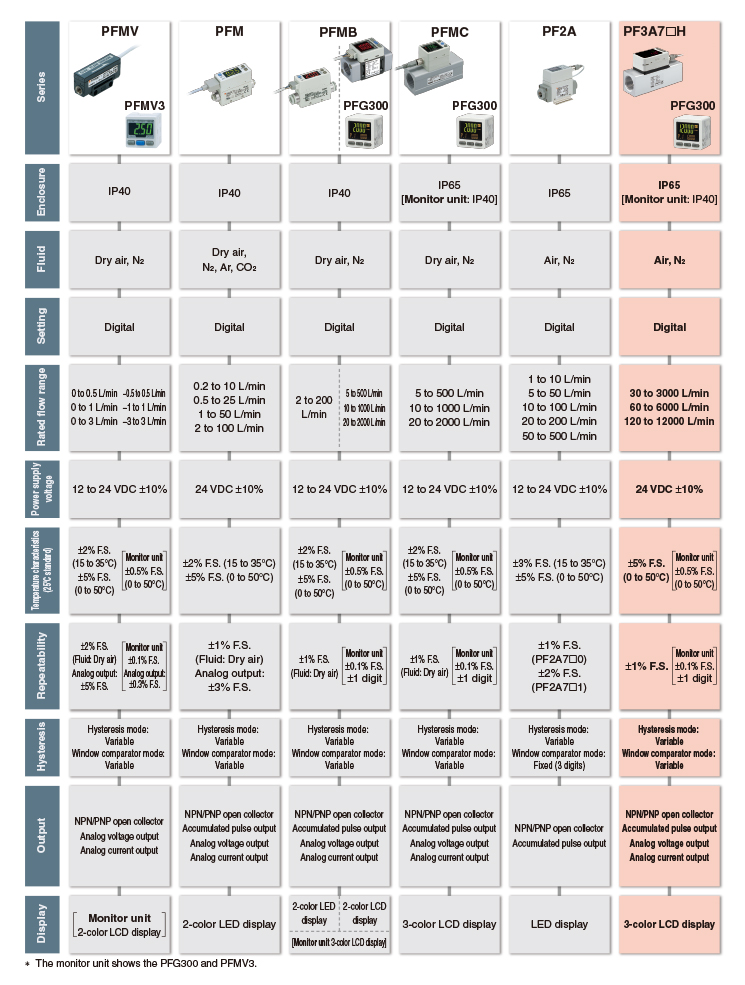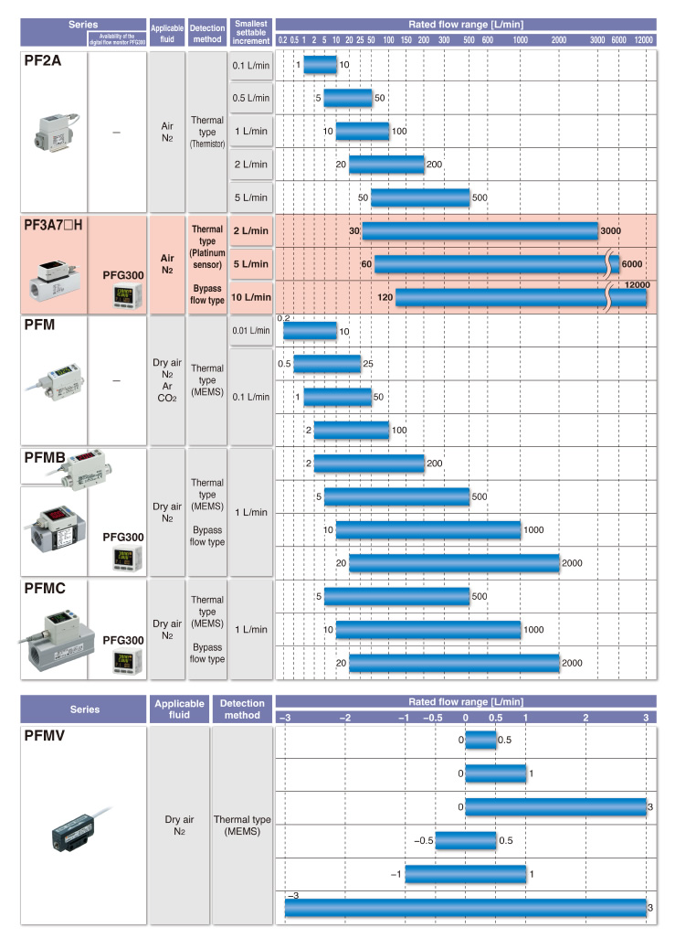 | PF3A7□H | 30 to 3000 60 to 6000 120 to 12000 |