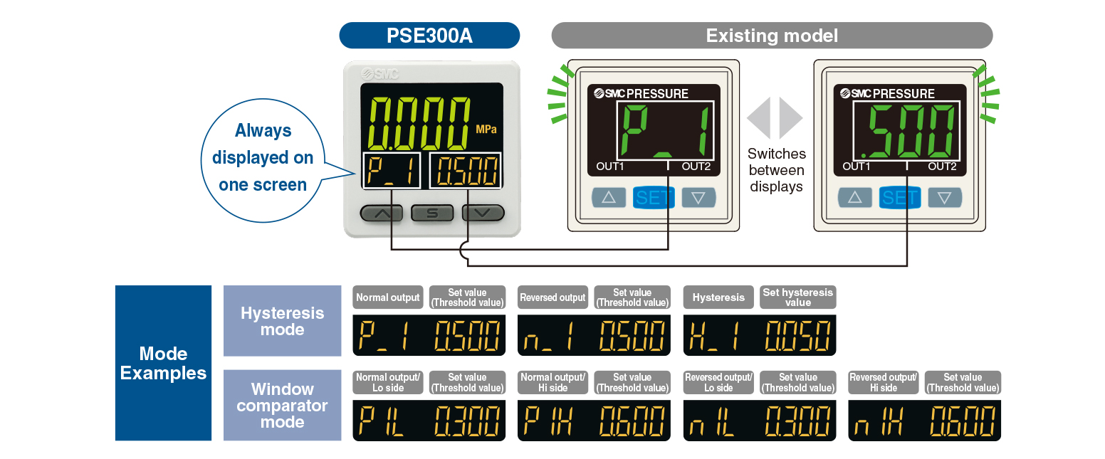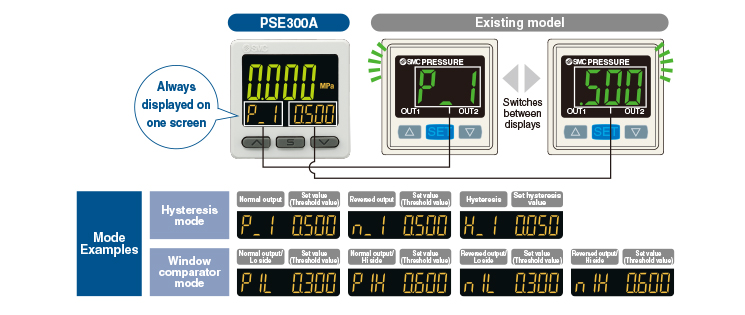 | PSE300A | −0.2 to 2.1kPa 10 to −105kPa −105 to 105kPa −10 to 105kPa −50 to 525kPa −0.105 to 1.05MPa −0.105 to 2.1MPa −0.25 to 5.25MPa −0.5 to 10.5MPa |
