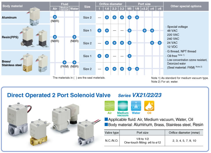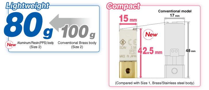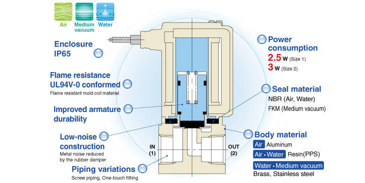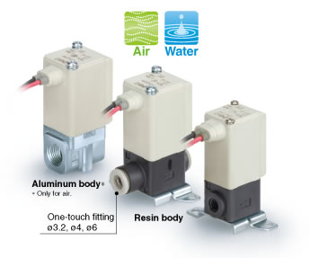 ・Body material: Aluminum, resin (PPS), Brass, Stainless steel ・With One-touch fittings (resin body) ・IP65 |