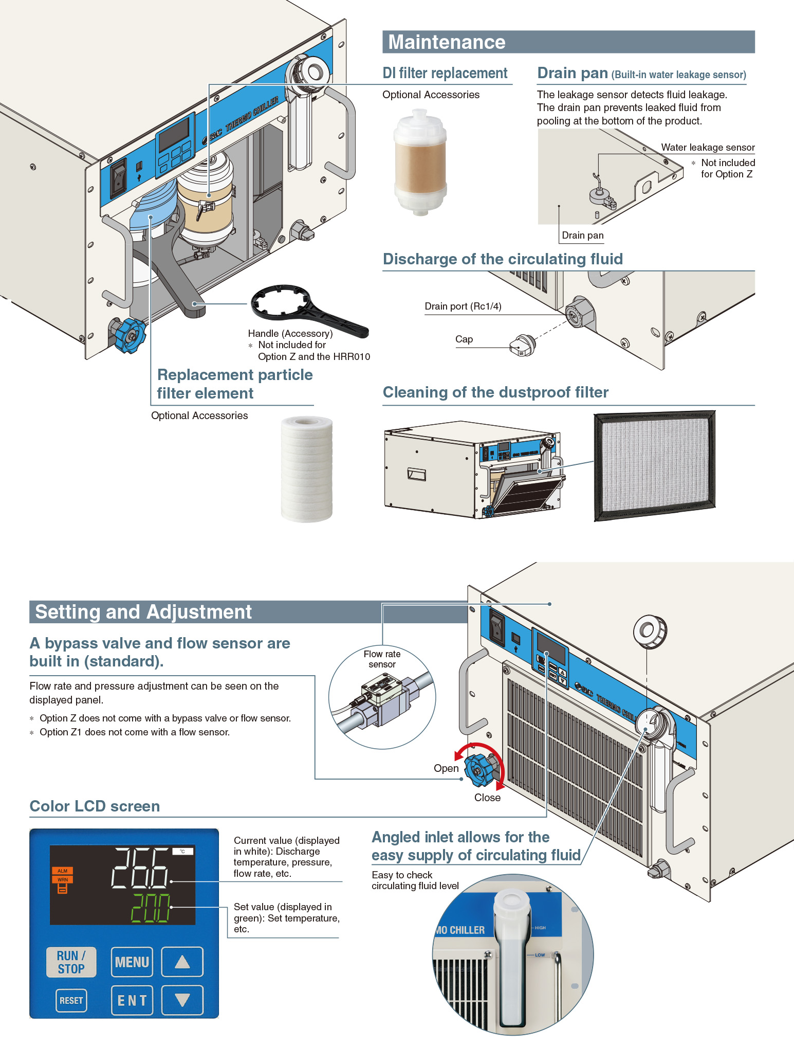 Thermo-chiller internal temperature, pressure, etc., can be displayed.