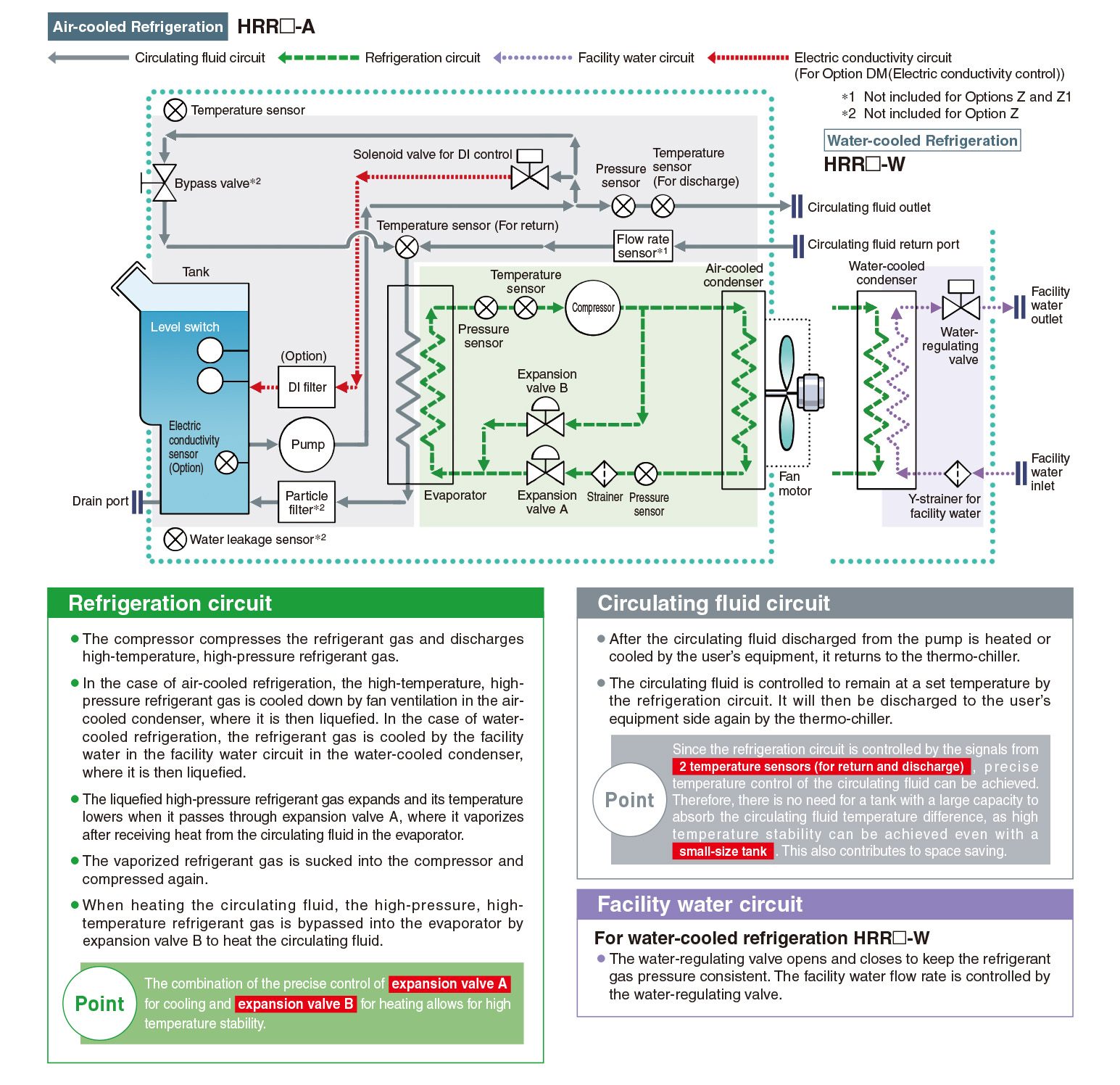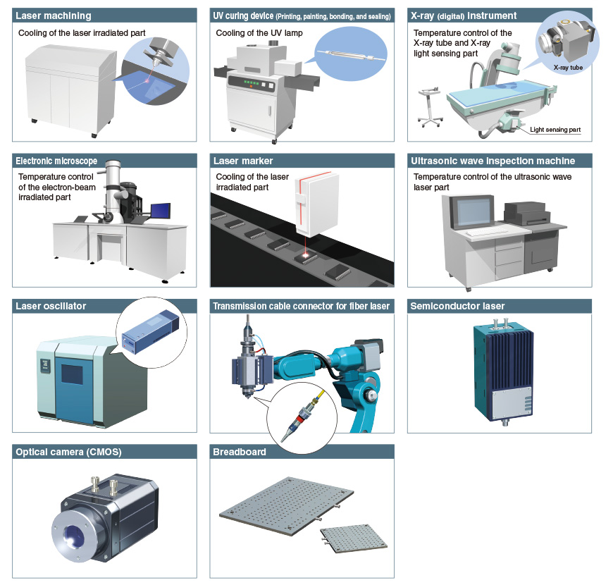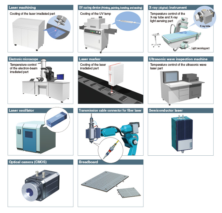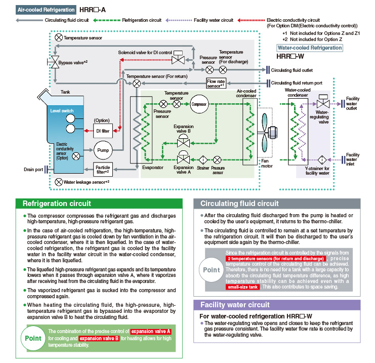 A precision temperature control method which utilizes expansion valves and temperature sensors allowed for the realization of a product with a high temperature stability of ±0.1°C.