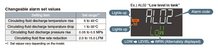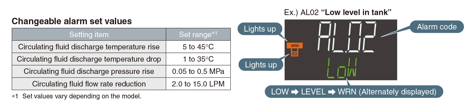 Display of 24 types of alarm codes Operation is monitored at all times by the integrated sensor.