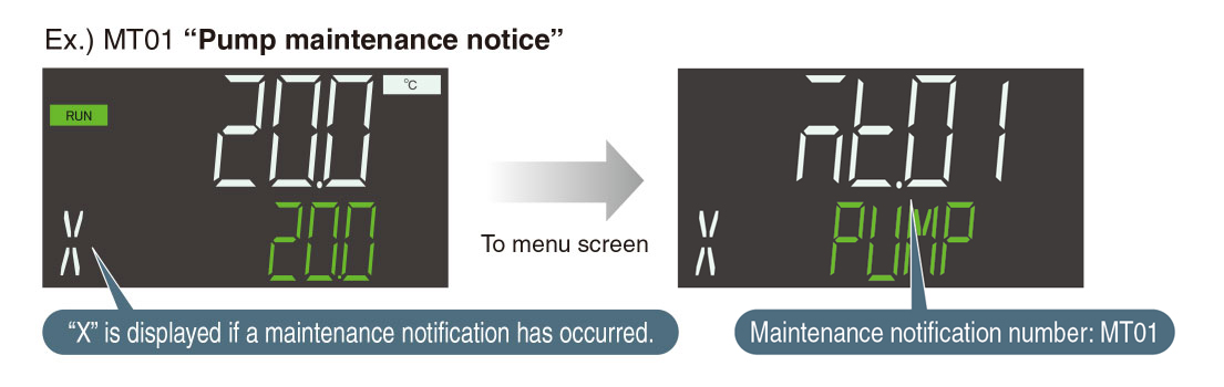 When it is time for periodical checks of the pumps, fan motor, dustproof filter, etc.,