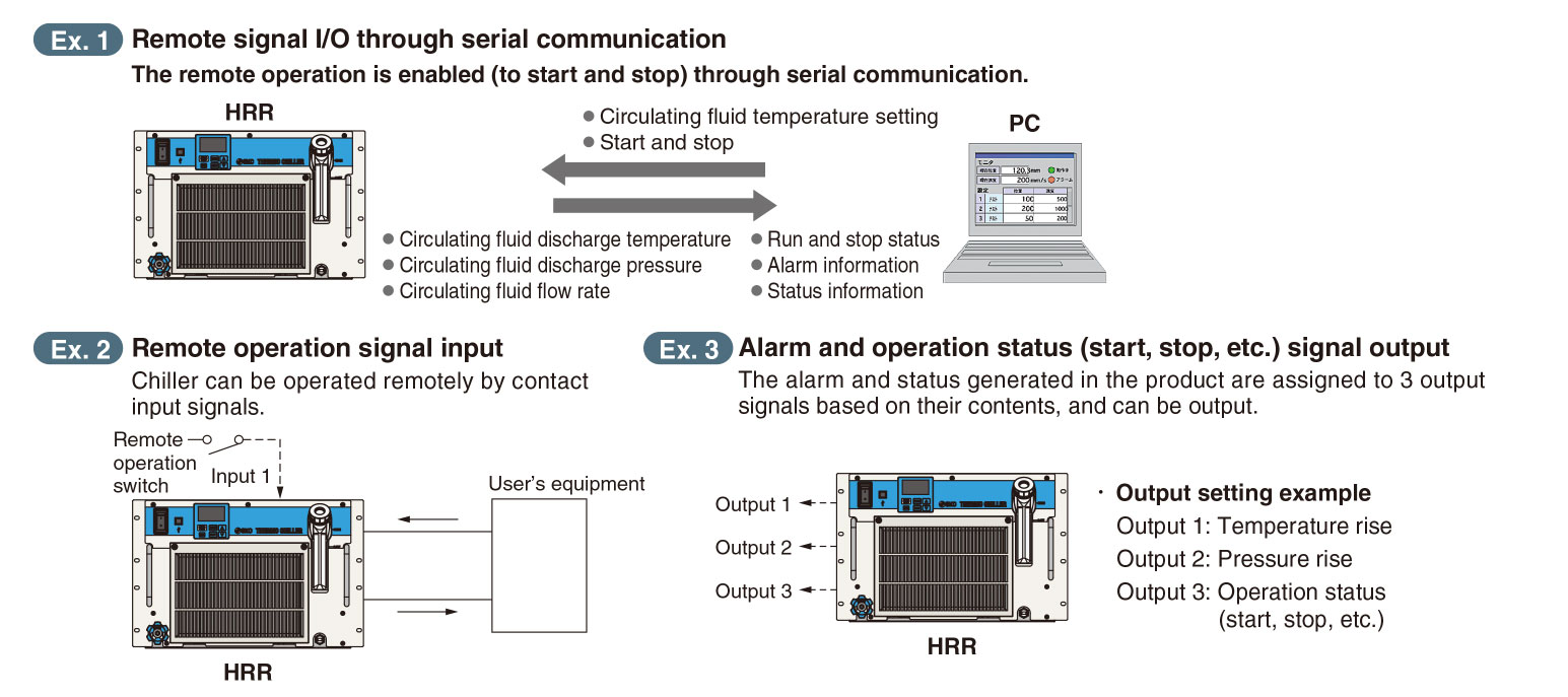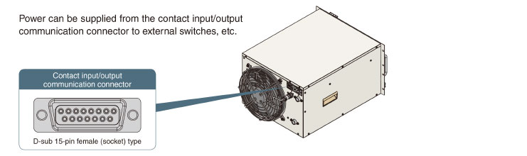Serial communication (RS-232C/RS-485) and contact input/output signals (2 inputs and 3 outputs)