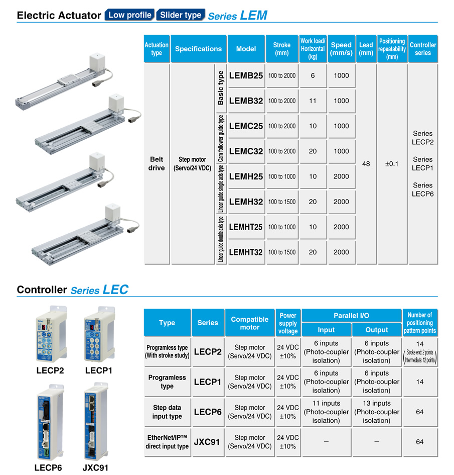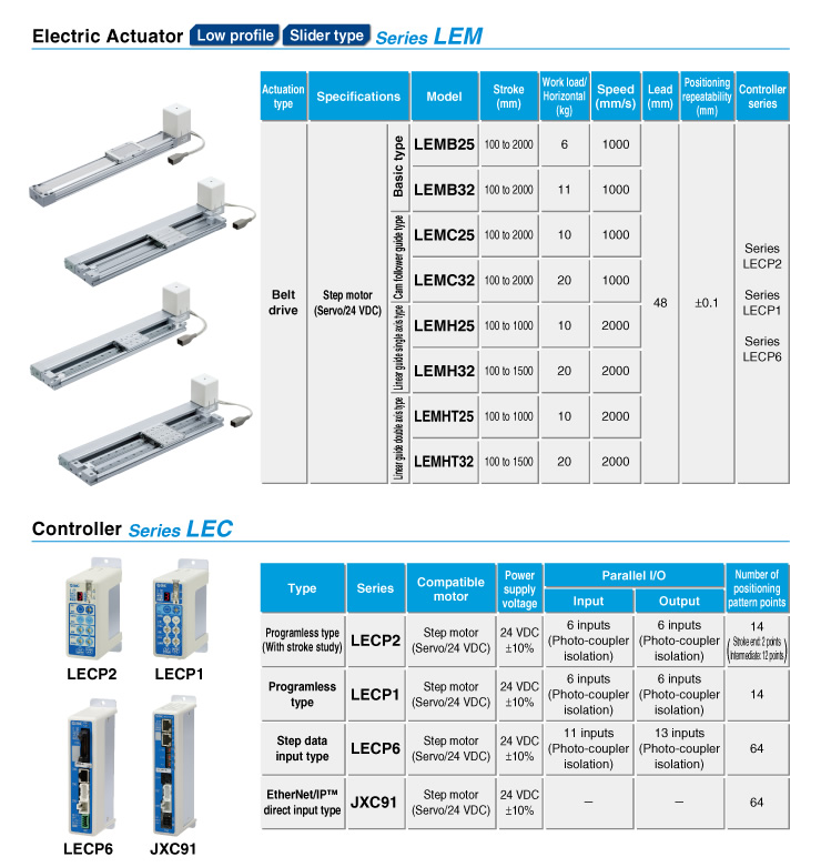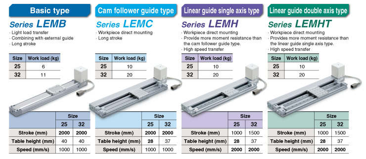 Linear guide (Single axis) | LEMH | 5 to 1500 | 10,20 | MAX.2000 | 48 |