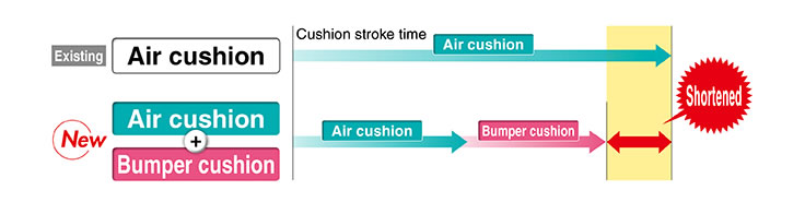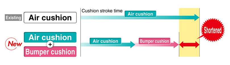 By adopting a new cushion method (Air cushion + Bumper cushion), Cycle time shortened