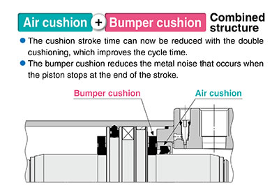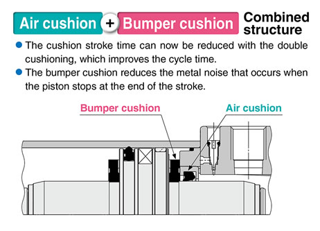■The bumper cushion reduces the metal noise that occurs when the piston stops at the end of the stroke.
