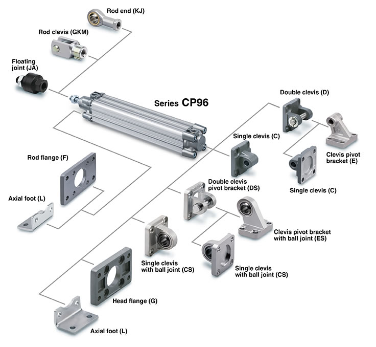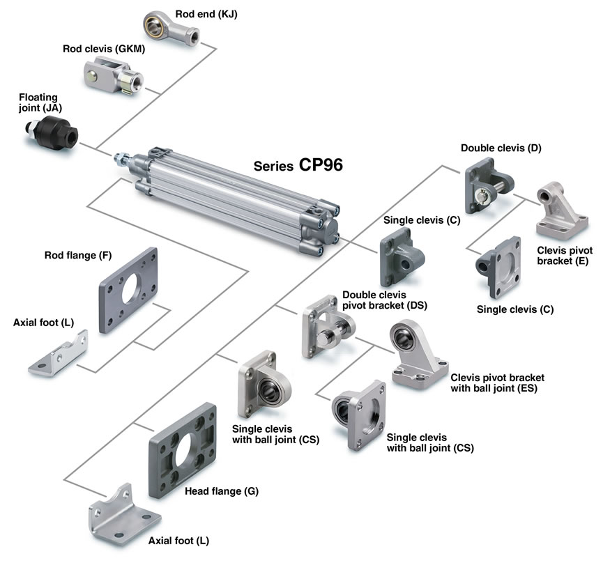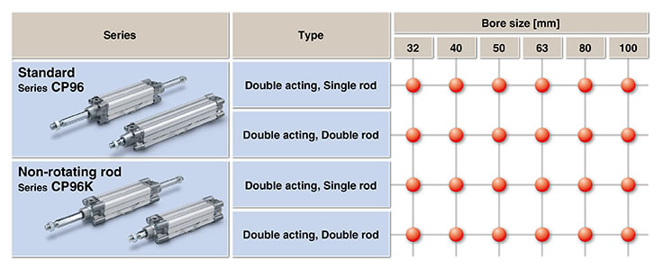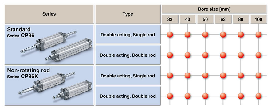 | Standard | CP96 | Double acting single rod Double acting double rod |