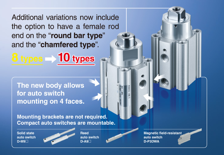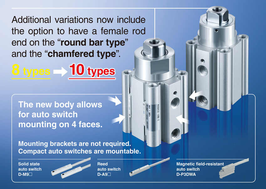 ■The new body allows for auto switch mounting on 4 faces.